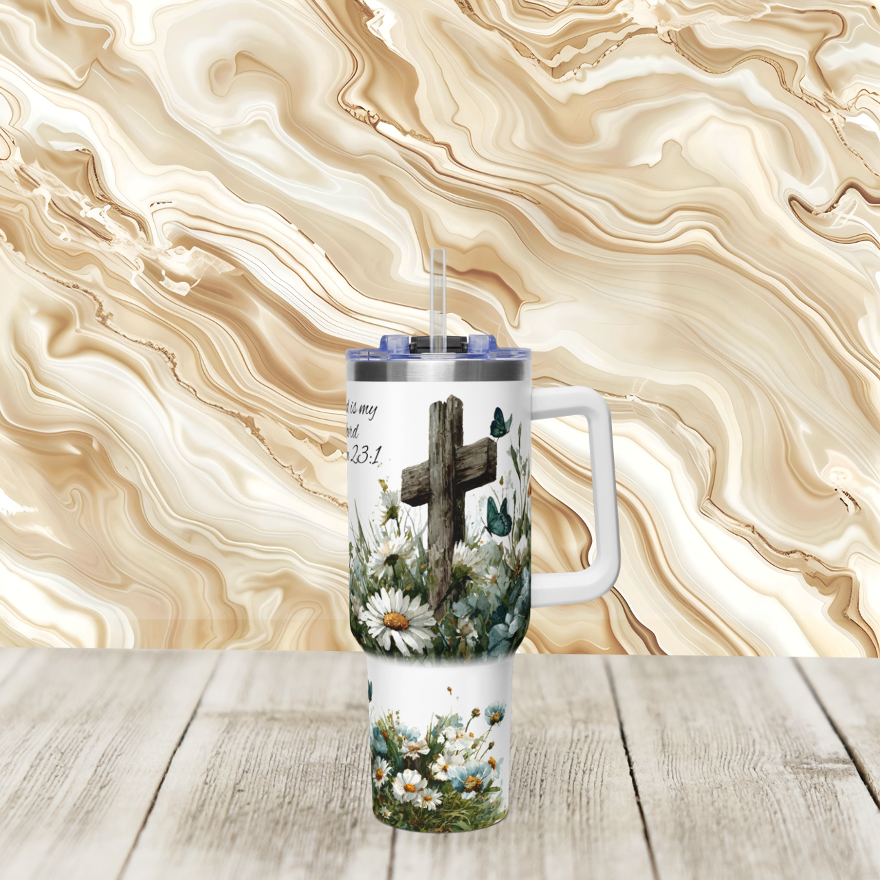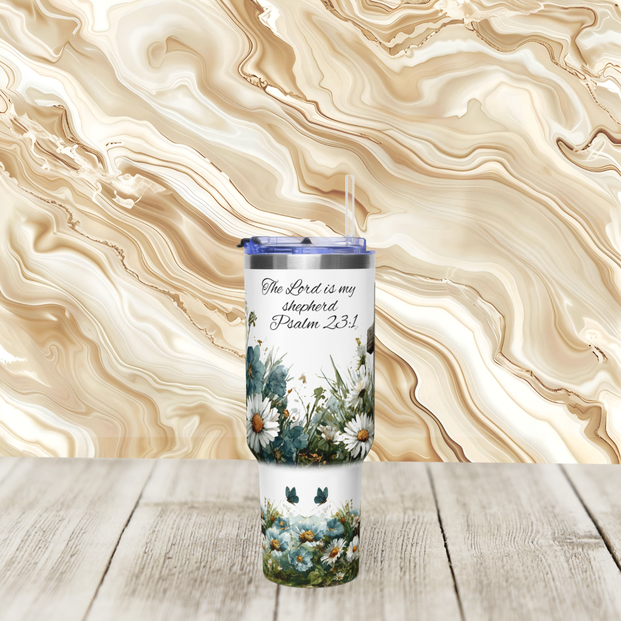 40oz Vacuum Tumbler — Psalm 23:1 Floral Insulated Travel Mug