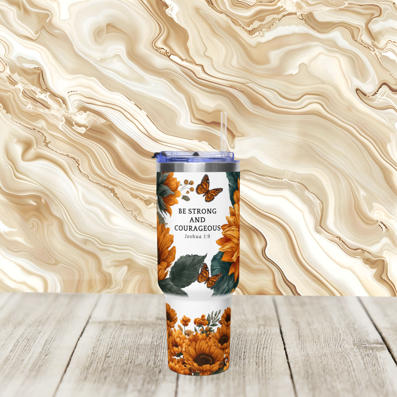 40oz Sunflower Tumbler — Joshua 1:9 “Be Strong and Courageous” Vacuum Insulated Travel Cup