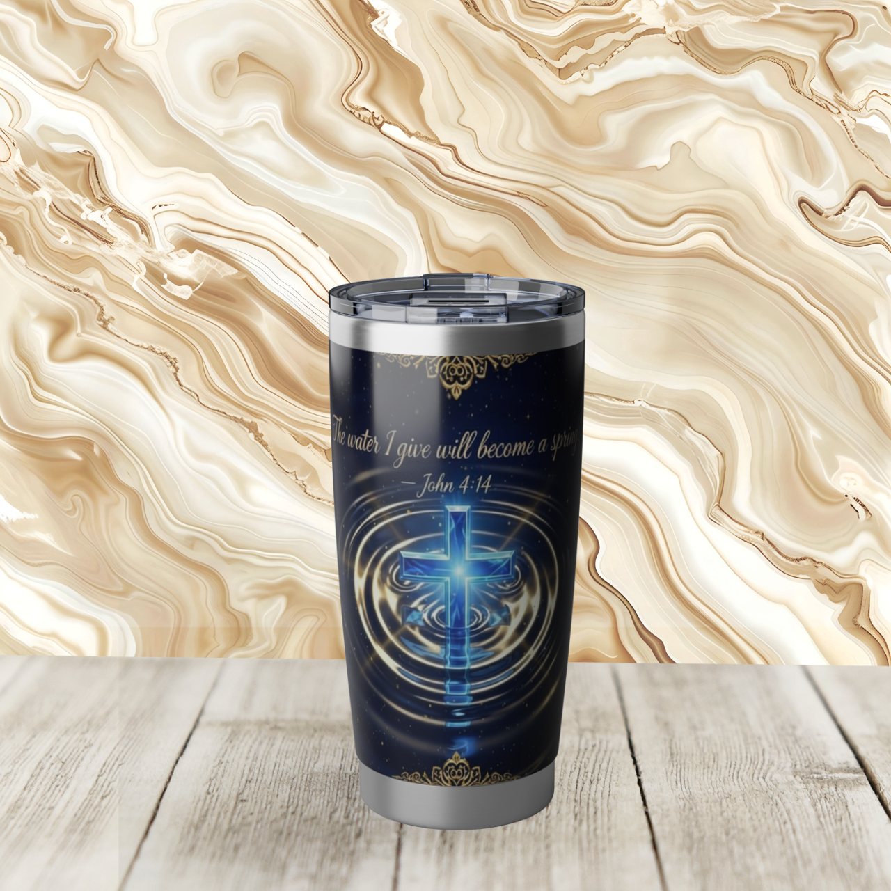 John 4:14 Christian Cross 20oz Tumbler — Inspirational Travel Mug