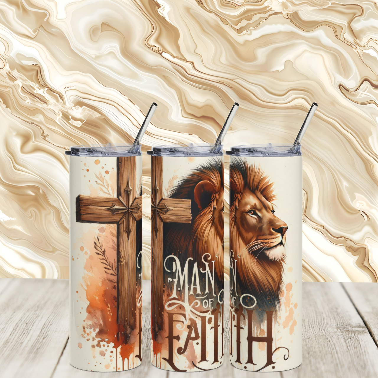 Man of Faith 20oz Stainless Steel Tumbler — Inspirational Faith Travel Mug with Straw & Lid